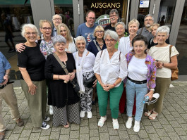 Mit zwanzig Personen besuchten wir das Schwebodrom in Wuppertal. In drei Stationen wurde mit bunten Illuminationen das Thema Mobilität im 19. Jahrhundert beeindruckend dargestellt, Ausstellungsstücke der Schwebebahn von den Anfängen bis heute besichtigt, und als Höhepunkt durchlebten wir mit Hilfe von VR-Brillen eine virtuelle Zeitreise. Dabei saßen wir in einem originalen Schwebebahnwagen, Baujahr 1900 und los ging die Reise, durch Wuppertal der zwanziger Jahre.